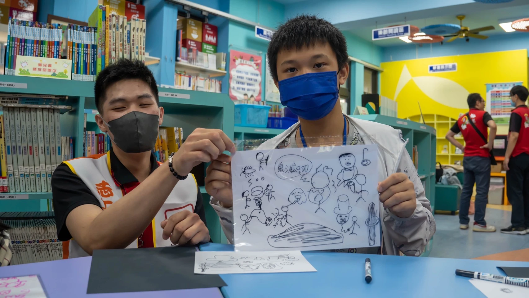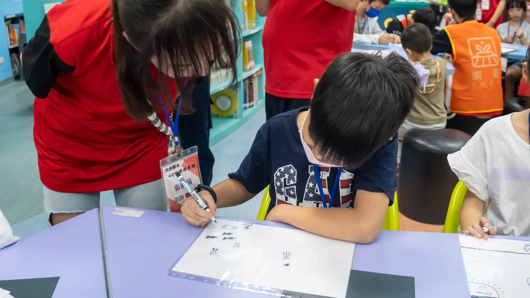 下午則是刺激又有意義的闖關,地點分布在體育館、圖書館各處,只見關關都難不倒小朋友的IQ、EQ商數,看來是隊輔哥哥、姊姊的體力要加油!